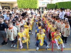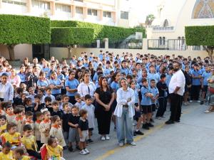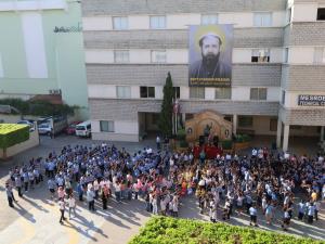 Après la messe, les élèves se sont réunis dans la cour principale de Mesrobian, où un moment touchant et symbolique a été immortalisé lorsque le portrait du saint martyr a été hissé sur la façade de l'école. Le Directeur, M. Grégoire Kaloust, a pris la parole, illustrant le sens de l'appartenance nationale et religieuse et de la sainteté à travers la vie et le martyre de l'archevêque Maloyan, soulignant que son parcours demeure le plus brillant exemple de persévérance dans la foi et de témoignage de la vérité.