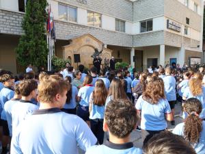 Պատարագէն ետք, աշակերտութիւնը հաւաքուեցաւ Մեսրոպեանի շրջափակը, ուր արձանագրուեցաւ յուզիչ եւ խորհրդանշական պահը, երբ դպրոցի շէնքի ճակատին բարձրացուեցաւ նահատակ սուրբին նկարը։ Խօսք առաւ տնօրէն պարոն Կրէկուար Գալուստ, որ Մալոյեան արքեպիսկոպոսի կեանքին եւ նահատակութեան օրինակին ընդմէջէն դիտել տուաւ ազգային եւ կրօնական պատկանելութեան եւ սրբութեան իմաստը, ընդգծելով, որ Մալոյեանի ճանապարհորդութիւնը կը մնայ հաւատքի մէջ անսասանութեան եւ ճշմարտութեան վկայութեան պայծառագոյն օրինակ։