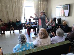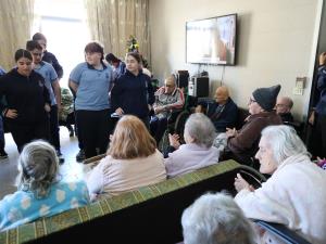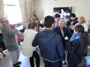 The visit began with an opening speech by Sergio Jernezian. Then, Joe Harutiunian and Christ Mardirossian played music in order to entertain the seniors, creating a joyful atmosphere where everyone sang and danced with the students. This was followed by a performance of an Armenian folk dance by Mesrobian’s students. At the end, the seniors were served desserts.