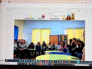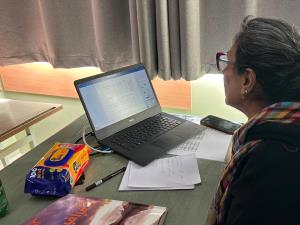 Initially, online classes resumed for the three upper classes of the secondary division. Our teachers conducted the lessons from the school, maintaining live communication with the students. The three intermediate classes will soon join this system as well.